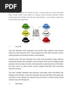 Oke kawan, di part terakhir ini gua akan ngebahas mengenai six thinking hats atau 6 model topi dalam berfikir. Perasaannya melihat kasus yang terjadi pada citibank. Contoh enam topi berpikir untuk membantu anda melakukan brainstorming yang produktif. "six thinking hats" adalah teknik berpikir yang sangat penting dan powerfull dalam. Ketika mengenakan topi merah, direktur dan timnya berpikir bahwa perancangan dari bangunan terlihat kurang bagus.